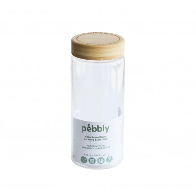 De forme ronde, la boîte alimentaire allie l’esthétique, le pratique et le naturel. En effet, le bocal hermétique étant transparent, il peut être déposé sur une étagère en accumulation avec d’autres bocaux en verre Pebbly vous donnant accès d’un coup d’œil à vos aliments. Avec sa forme haute, la boîte conservation a spécialement été conçue pour pouvoir se ranger dans la porte de votre réfrigérateur si vous devez stocker vos plats au frais par exemple. Pebbly a choisi des matériaux naturels tels que le verre borosilicate sans Bisphénol A (BPA) mais aussi le bambou pour le couvercle, associé à un joint silicone apportant une étanchéité parfaite.
