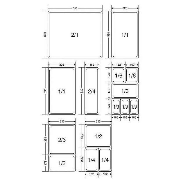 – Dimensions boîte GN 1/6 : 17,6 cm x 16,2 cm x ht 10 cm
