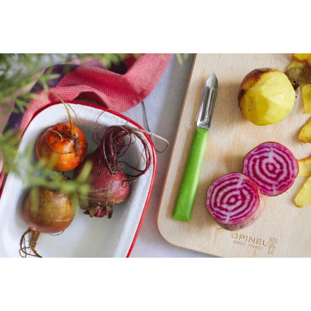 Courges, pomme de terres, pommes et prunes n’ont qu’Ă bien se tenir ! Avec votre Ă©plucheur Opinel en main, vous ne ferez qu’une bouchĂ©e de ces ingrĂ©dients. Une lame en inox performante associĂ©e Ă un manche en polymĂšre robuste ; voici les matĂ©riaux qui constituent l’Ă©plucheur N°315.