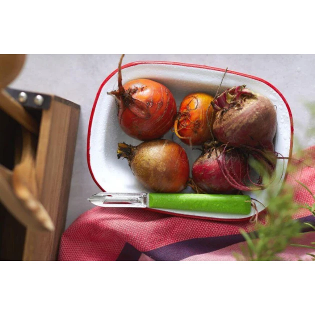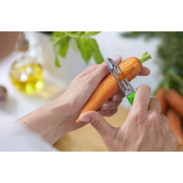 Issu de la collection Les Essentiels, cet Ă©pluche-lĂ©gumes est Ă la base d’un grand nombre de recettes plus variĂ©es les unes que les autres. Que vous soyez un cuisiner du dimanche, ou un professionnel des fourneaux, cet ustensile vous sera utile. Facile Ă manier et à entretenir, l’Ă©plucheur vert vous sera un alliĂ© prĂ©cieux.