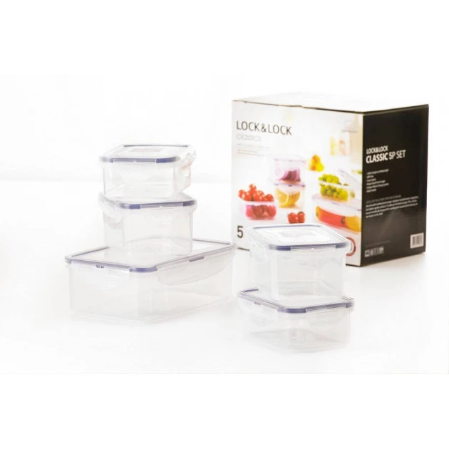 Lot de 5 Boîtes de Conservation Plastique 350 ml – 470 ml – 1 L Lock and Lock