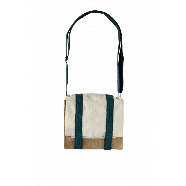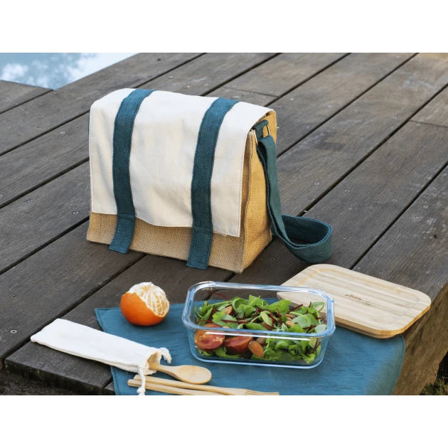 Grace à sa bandoulière, vous pourrez aller au travail à vélo sans risquer que votre sac ne glisse de votre épaule. Les sangles en velcro permettent de fermer votre sac à lunch et ainsi transporter votre repas en toute sécurité. Fabriqué en coton bio et fibre de jute, ce sac déjeuner dispose d’un fond rigide amovible permettant à votre sac de rester stable lorsque vous posez vos différentes boîtes à l’intérieur.