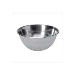 Cul de poule , ou bassine à pâtisserie demi-ronde, en acier inoxydable et fond arrondi avec une petite base plate afin de maintenir le cul de poule à droit sur une surface plane.