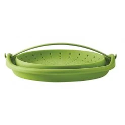Utilisez la Passoire Silicone Rétractable pour égoutter vos aliments, mais pas seulement : elle peut également vous servir à cuire à la vapeur vos légumes ! En effet, la Passoire Pliable s’adapte sur des casseroles de 24 cm de diamètre, devenant ainsi un Panier Cuisson Vapeur avec une anse amovible. De plus, cette Passoire en Silicone supporte les températures de – 40 à 220 °C.