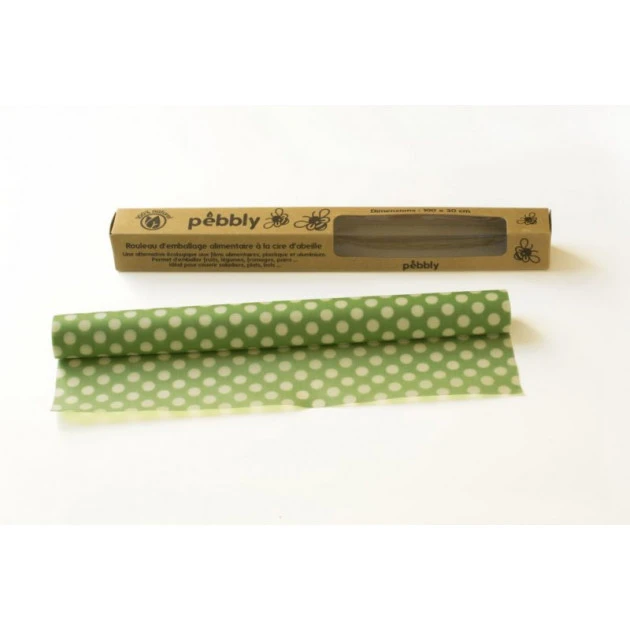 Rouleau Emballage Alimentaire Cire Abeille Pois Vert 30 x 100 cm Pebbly