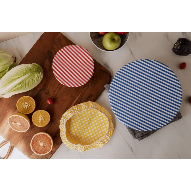 Objectif zéro déchet avec ce set de 3 couvercles multicolores. Biodégradable et 100% coton, l’emballage alimentaire écologique réutilisable est une alternative au film alimentaire en plastique ou encore à l’aluminium.
