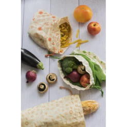 Dans ce lot proposé par Pebbly, vous retrouverez un sac à vrac, un sac à légume et un sac à pain. Les sacs en tissu sont fabriqués en coton biologique naturel à forte densité et sont équipés d’un cordon de resserrage.